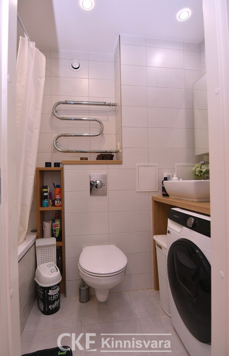 Vannitoas vann, wc ning valamunurk töötasapinnaga, mille alla saab paigutada pesumasina. Olemasolev pesumasin ei jää sisse või siis kokkuleppel.