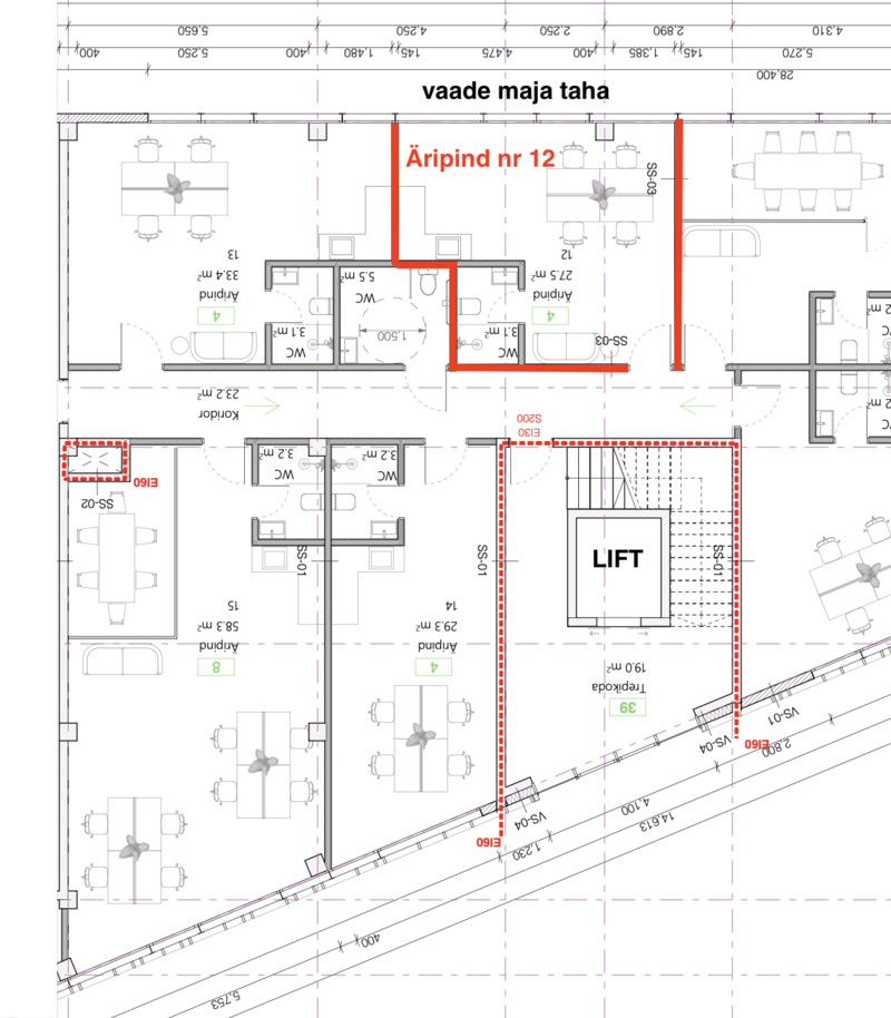 Planeeringuid saab hetkel veel vastavalt vajadusele muuta. Planeeritud on, et igasse äripinda tuleb WC ja vajadusel ka duši- ning kööginurk.