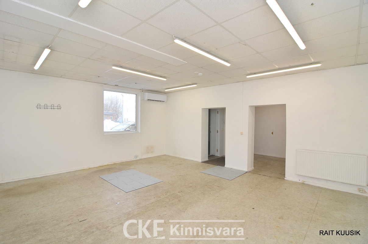 Suur ruum 40 m2 + 10 m2 (abiruum-esik). Abiruumi saab teha köögi, olemas vesi-ja kanalisatsioon. Sovbilik kauplus-teeninuspinnaks kui ka laopinnaks.